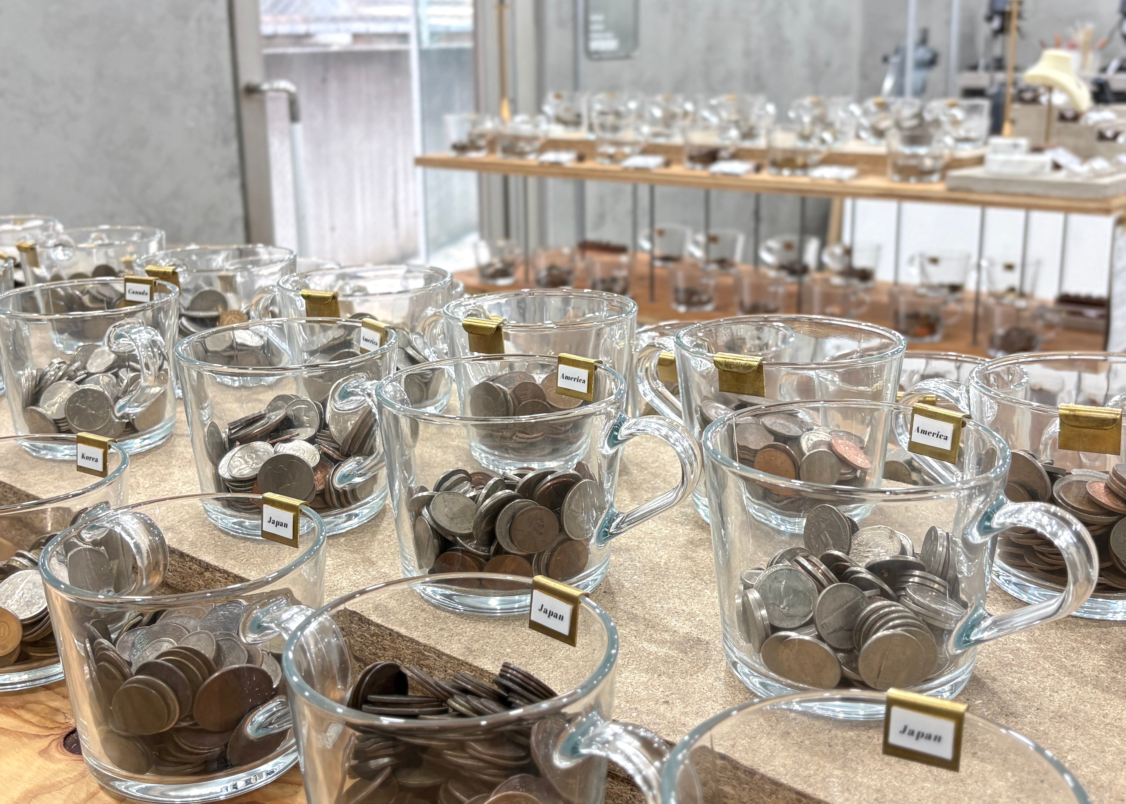 世界中から集めた約1万枚のコイン。その中からじっくりとお選びいただけるよう、時間制限は設けておりません。ただし、次のお客様がいらっしゃる場合は25分ほどでのご協力をお願いする場合がございます。